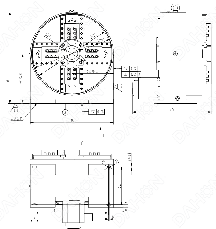 此產品為后置激光管切割轉臺,通配160、220及320型前置大通孔轉臺,此轉臺除具備GT11部分優點以外,還具有以下特點: