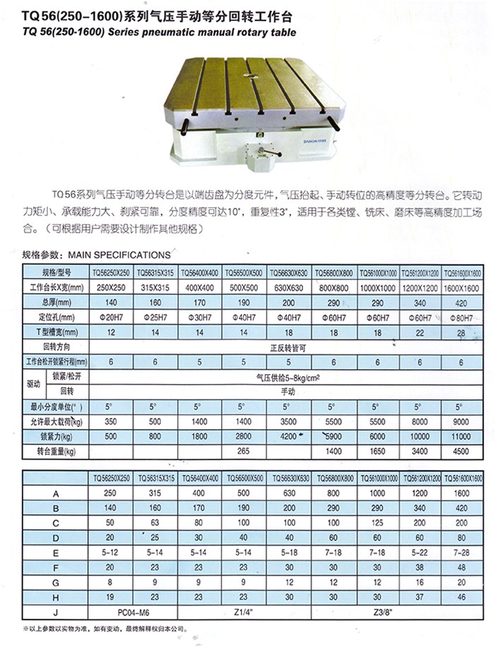 TQ56(250-1600)系列氣壓手動等分回轉工作臺